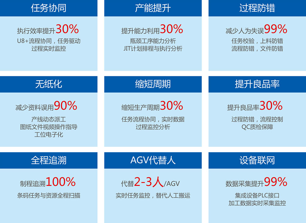 智能制造不但要生产自动化、信息化,更需跨业务层级整合信息系统,实现业务层、执行层、监控层、设备层的互联互通。mes系统是链接业务层与设备监控层的桥梁,通过mes可以实时掌控生产进度与监控异常。